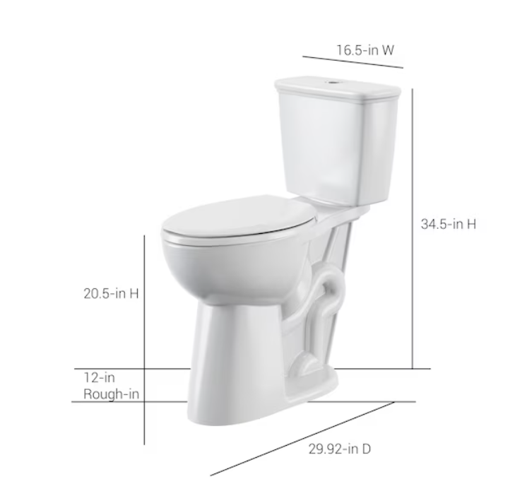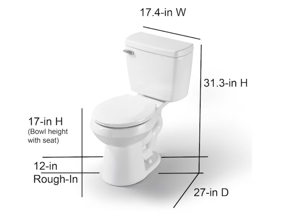 Standard 12-inch rough-in fits most bathroom plumbing layouts